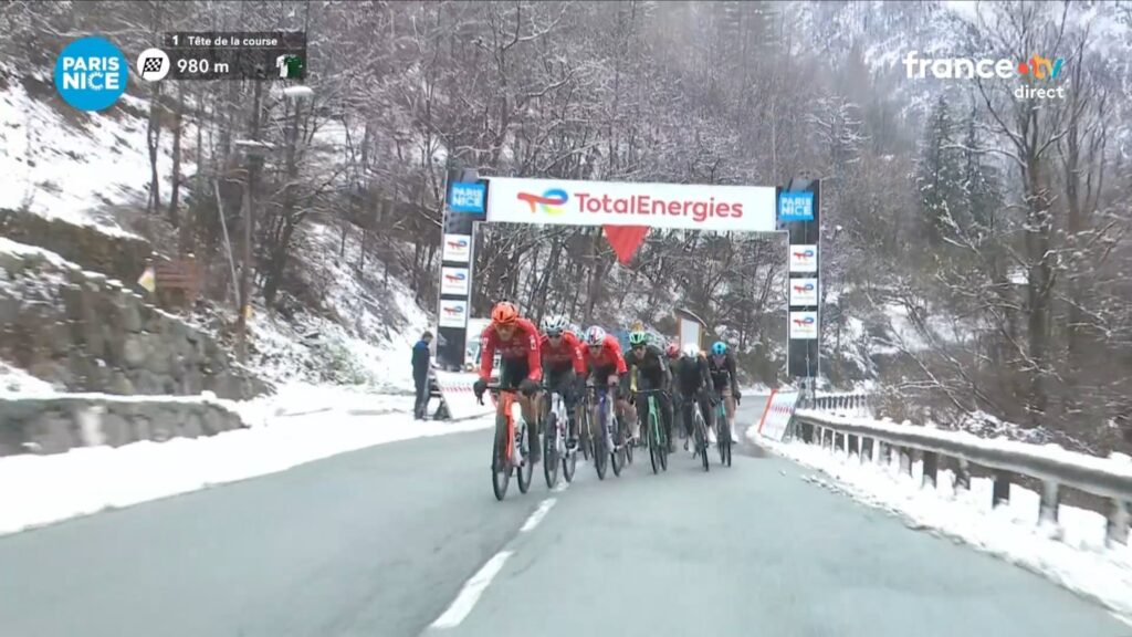 Tal fue la superioridad y la incomparecencia de sus rivales que las diferencias hablan por sí solas. Camino de Colombier-le-Vieux, fueron dos los minutos que le endosó al resto. Y eso que no había puertos de gran entidad por el camino. Bastó un terreno de cotas para dejar claro quién iba a levantar el sol en Niza. Como no había ya llegadas en alto por la suspensión de Auron, la alfombra roja de la última etapa sirvió de nuevo al danés para lucir vestido. Esta vez invitó a Lenny Martinez a su fiesta y le dejó pasar primero. El francés le está cogiendo el gustillo a ganar etapas en esta prueba.